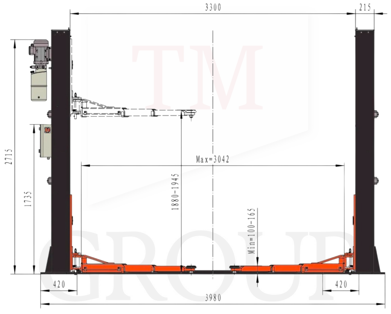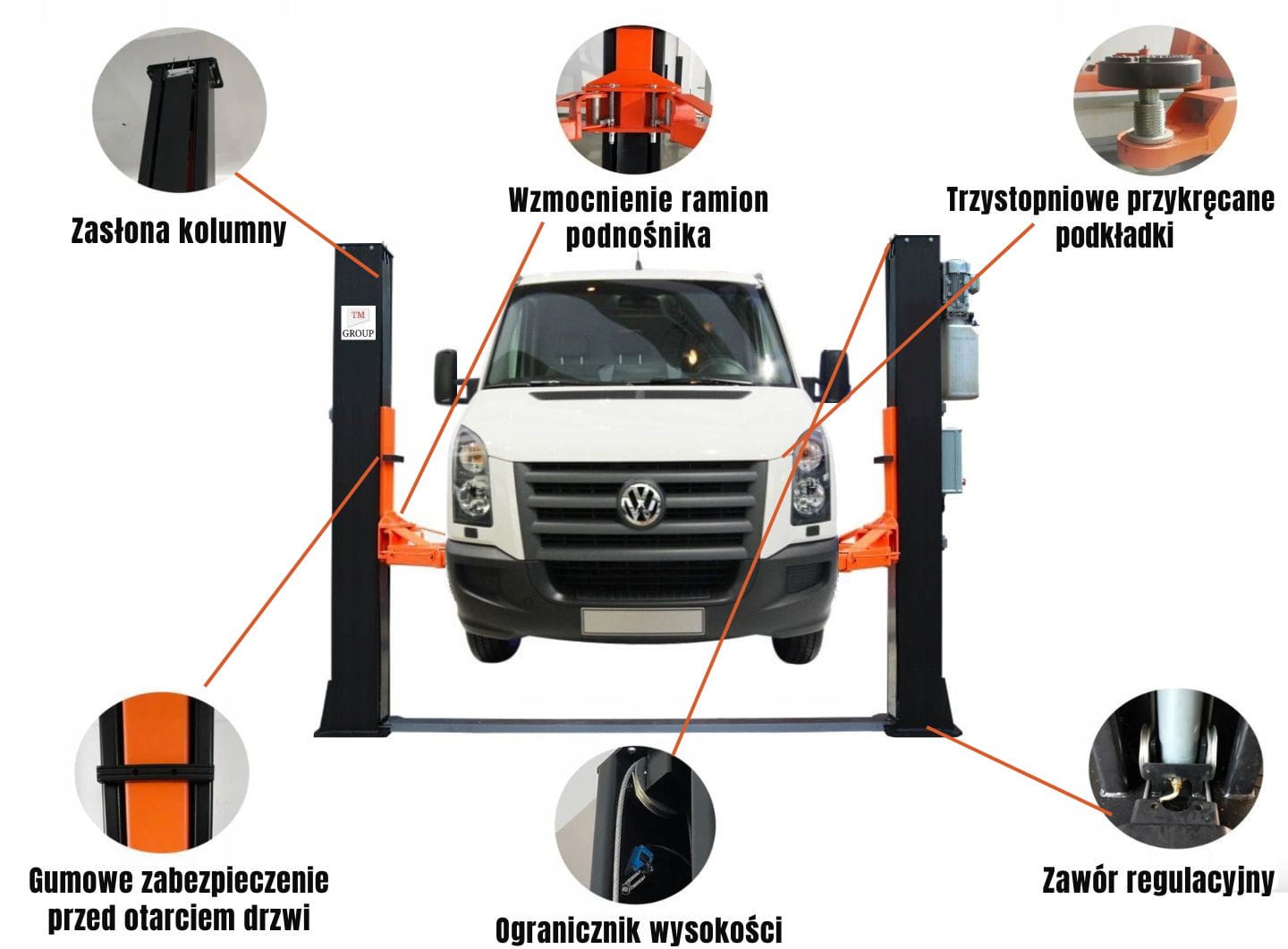 Podnośnik dwukolumnowy samochodowy warsztatowy do busów