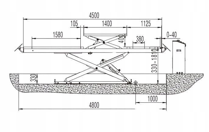 Podnośnik nożycowy podposadzkowy najazdowy diagnostyczny specjalistyczny warsztatowy 4T DO ZBIEŻNOŚCI / DO GEOMETRII