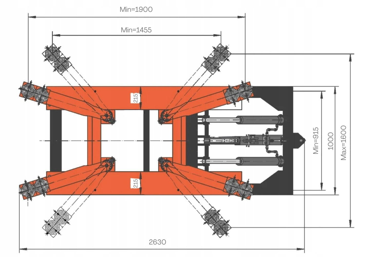 - Mechaniczna blokada bezpieczeństwa między siłownikami.