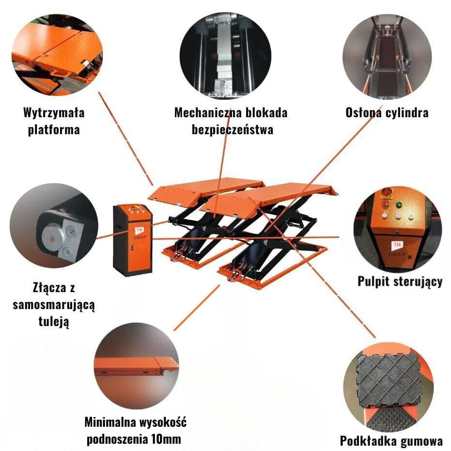 Podnośnik Nożycowy 3T Naposadzkowy Warsztatowy Wysokiego Unoszenia TM-GROUP